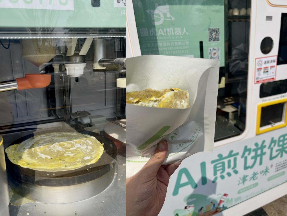在亦庄早上出门,为了积极响应爸妈 “记得吃早饭” 的催促,你可以请机器人为你摊个煎饼。