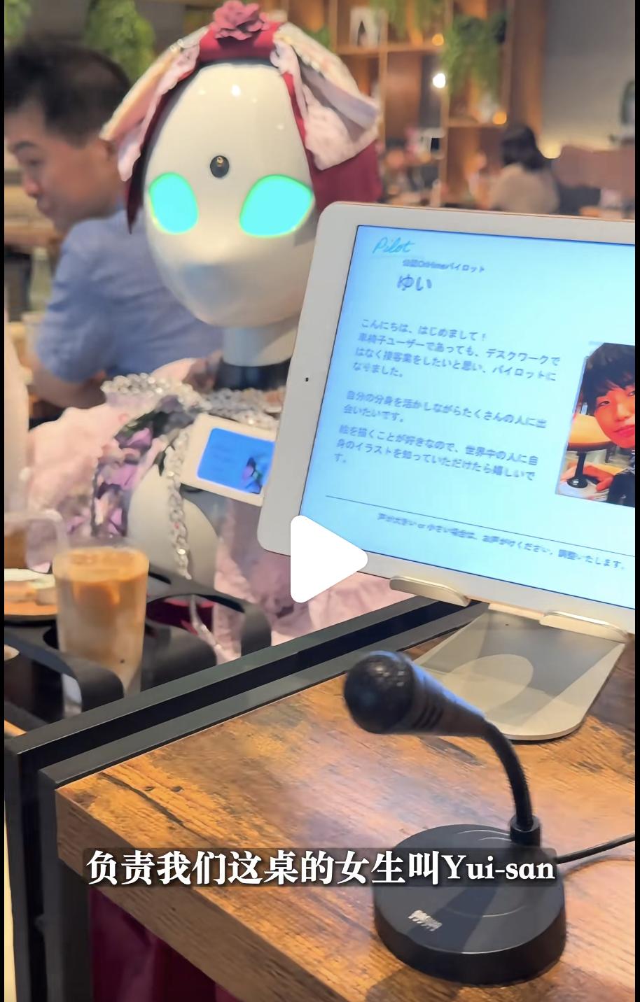 说到 “能工智人”,另外一家位于日本东京秋叶原的 “分身机器人咖啡馆” 提供了另一种思路:在那里,因生病或残障无法出门的人成为 “飞行员”,通过摄像头和麦克风远程操作机器人,为客人送餐,和客人聊天,谈彼此的生活和梦想,因此被称为 “最有人味儿的餐厅”。