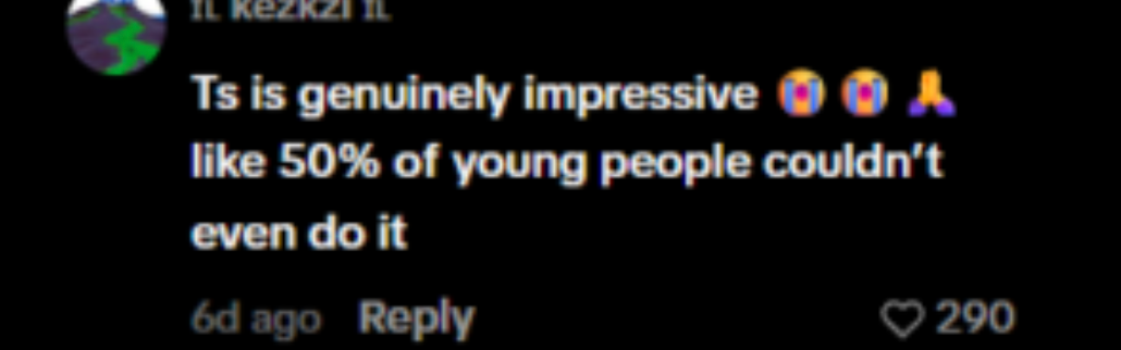 另一位网友称赞说:“这真令人佩服!我想现在许多年轻人可能连她的一半都做不到。”