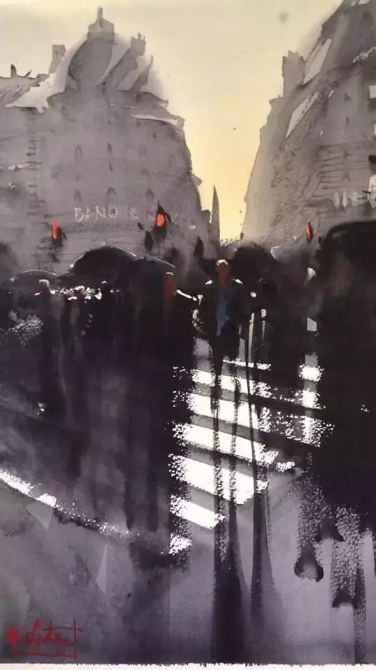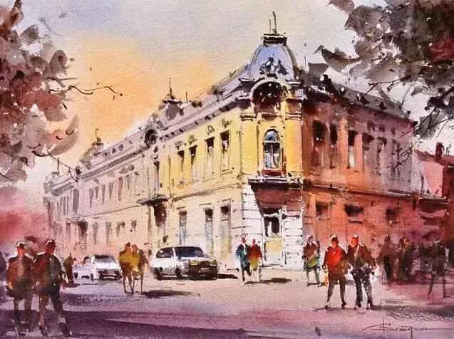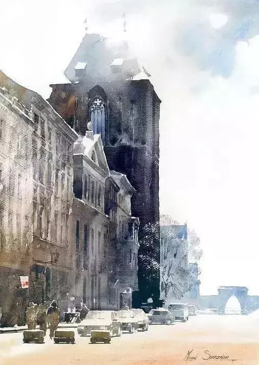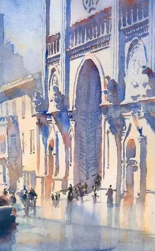 色彩过渡非常微妙,灰色调表现出大师的色彩修养是很独到和高超的,这种调子在国内建筑水彩画中罕见。