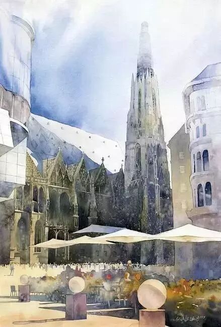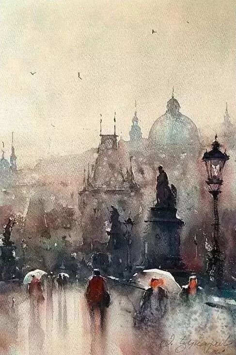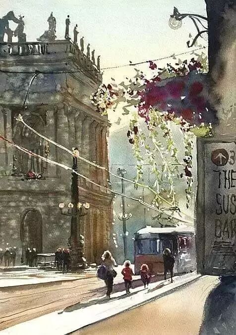 看完他的水彩画,才知道什么叫建筑细部的表现力,空气透视感,无处不在的对比……大师真的不是白叫的。