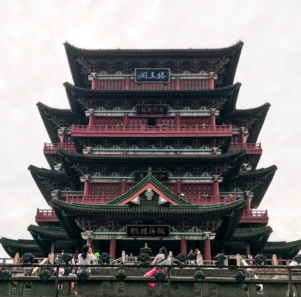 滕王阁,因“初唐四杰”王勃一篇《滕王阁序》脍炙人口,传诵千秋,与湖北黄鹤楼、湖南岳阳楼为并称为“江南三大名楼”。始建于唐永徽四年(653年),为唐太宗李世民之弟滕王李元婴任江南洪州都督时所修,现存建筑为1985年重建的仿宋建筑风格。