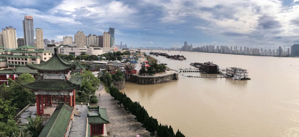 在第五层阁楼远眺长江。虽无缘得遇“落霞与孤鹜齐飞,秋水共长天一色”,却也体味到了“浩浩汤汤,横无涯际”