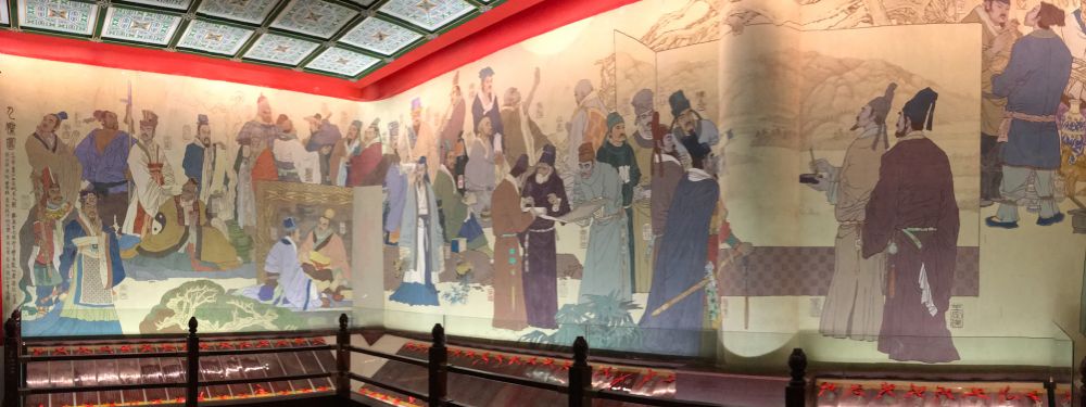 二层大厅的工笔重彩壁画《人杰图》,绘有自秦至明的80位各领风骚的江西历代名人。