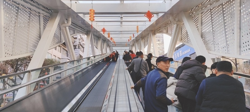作为重庆城市更新的重大项目,神女大扶梯是利用电扶梯进行多级提升的城市纵向交通要道。整个系统包含扶梯21部、电梯8部、自动人行道4部、人行天桥2座、跨线通道2座,可在20分钟内提升242.14米,相当于80层楼高。
