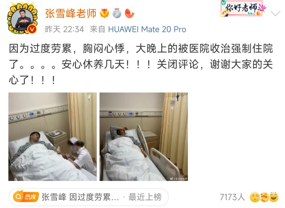 2023年6月,他就因过度劳累、胸闷心悸被强制住院。