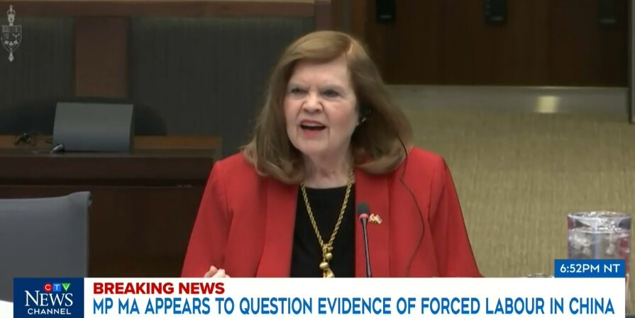 马荣铮在质询Margaret McCuaig-Johnston时说道:“你是否在深圳亲眼见过强迫劳动?你是否见过强迫劳动?请简单回答——你是否在深圳见过强迫劳动,是或否?”