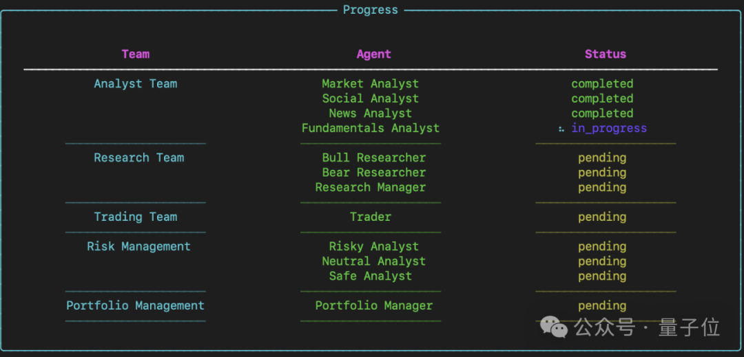 它的玩法很简单,在系统里设好几个专业角色协同干活,有基本面分析师、情绪分析师、技术分析师、研究员、交易员、风险管理师……这些角色扒完信息、经过一番评估讨论之后,最终再一起拍板要不要交易。
