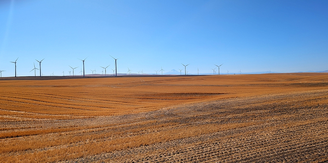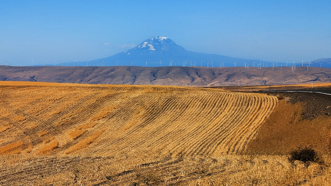 出山之后,就是俄勒冈的东部高原。这一带是美国的粮仓,路边都是一望无际的麦田。麦子刚刚被收割,留下的麦碴,呈现出大片的金黄色彩,非常好看。