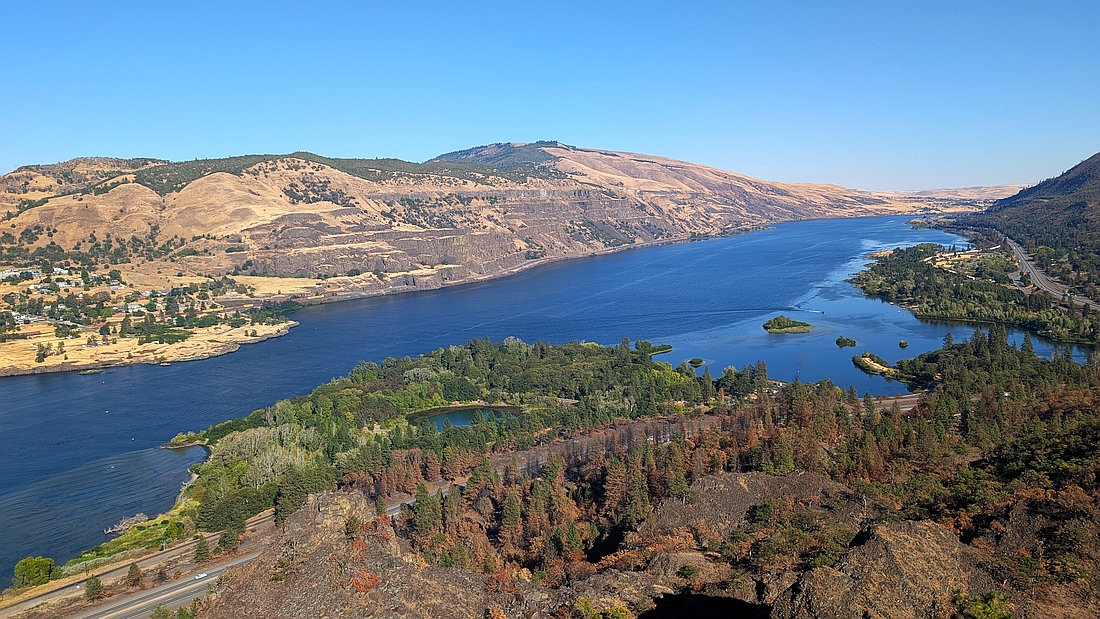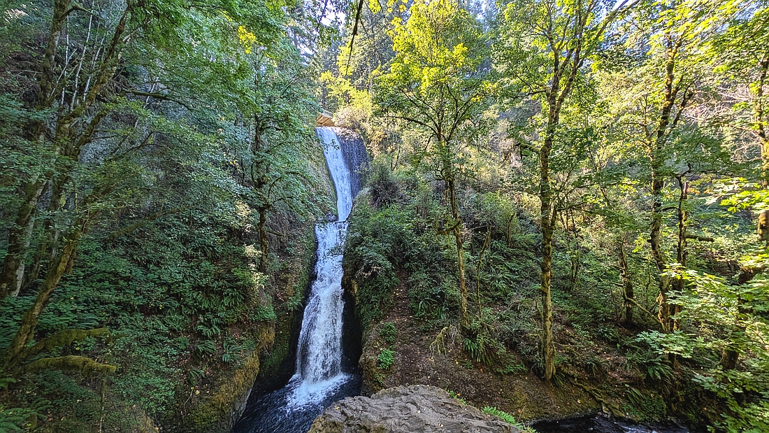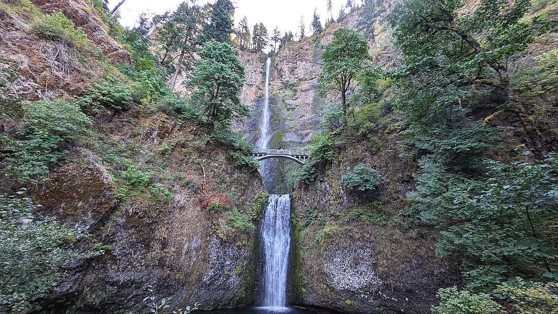 在Hood River的Westcliff Lodge投宿,旅寡袒于哥伦比亚河旁边。哥伦比亚是美国西北最大的河流,发源于加拿大,流入太平洋。河宽水急。它和中国的长江黄河最大的不同是,河水是蓝色的,因而很秀丽。两岸有很多瀑布、景点和观景台。最有名的瀑布是马尔特诺马瀑布Multnomah Falls,瀑布分为两段,上面一段542英尺,下面一段69英尺,总落差为620英尺。它是美国第二高的全年性瀑布。沿瀑布修了步道,步道上方修建了钢铁防护网,以防止落石。游客可以走上山去看哥伦比亚河和瀑布上游。为了方便游客来看这条瀑布,84号高速旁特意建了巨大的停车场。每年有超过二百万游客,是太平洋西北地区最被青睐的景点。但是,这样的景点不仅不收门票,而且免费停车。美国政府承担了全部维护费用,没有把它当作摇钱树。