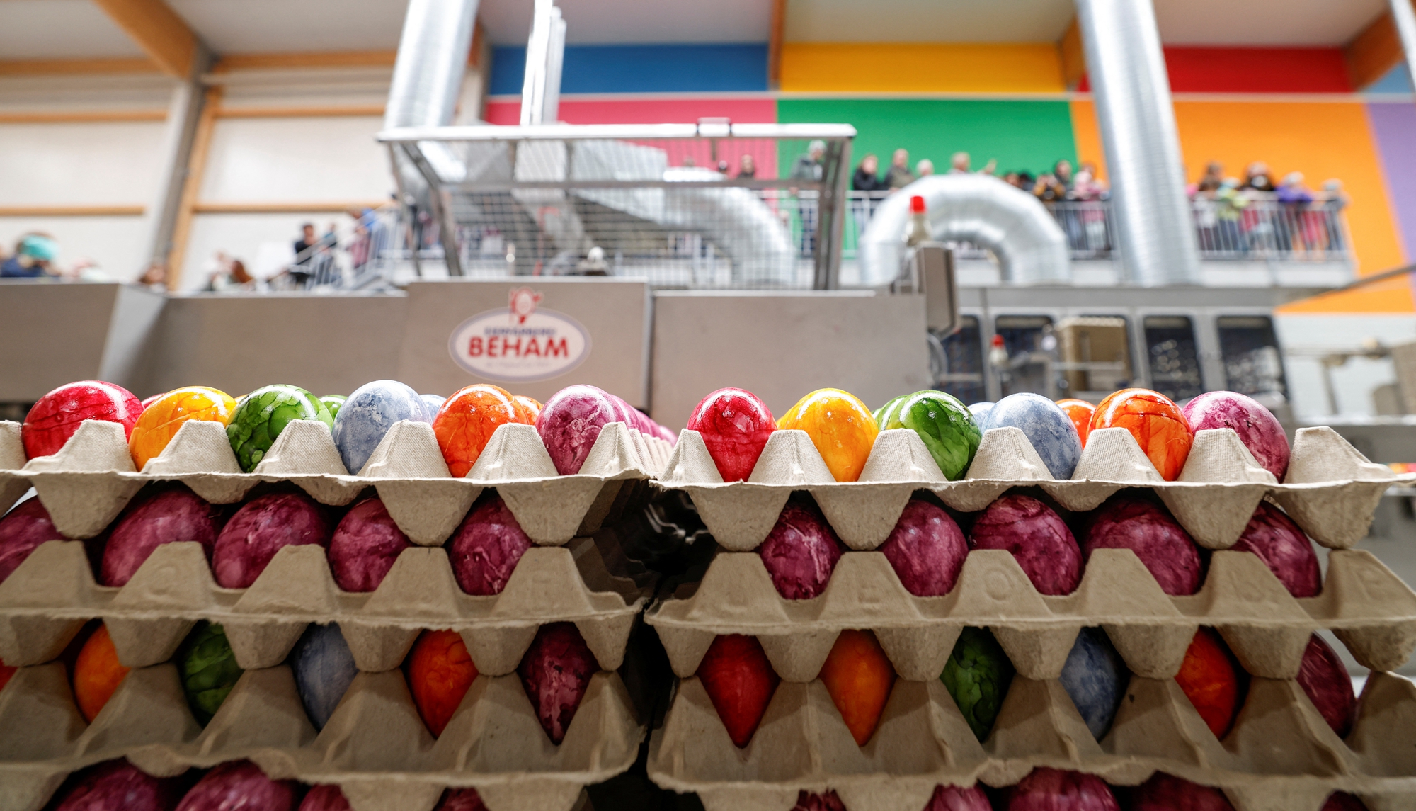 2026年3月28日,即复活节即将来临之际,位于德国巴伐利亚盅腾尔斯贝格市(Ursberg)的贝哈姆(Beham)彩蛋工厂正加班加点赶制复活节彩蛋。(Michaela Stache/AFP via Getty Images)2026年3月28日,即复活节即将来临之际,位于德国巴伐利亚盅腾尔斯贝格市(Ursberg)的贝哈姆(Beham)彩蛋工厂正加班加点赶制复活节彩蛋。(Michaela Stache/AFP via Getty Images)2026年3月28日,即复活节即将来临之际,位于德国巴伐利亚盅腾尔斯贝格市(Ursberg)的贝哈姆(Beham)彩蛋工厂正加班加点赶制复活节彩蛋。图为刚煮好的鸡蛋在工厂的一个特殊设备上进行上色。(Michaela Stache/AFP via Getty Images)2026年3月28日,即复活节即将来临之际,位于德国巴伐利亚盅腾尔斯贝格市(Ursberg)的贝哈姆(Beham)彩蛋工厂正加班加点赶制复活节彩蛋。图为上完色的彩蛋在工厂的一个特殊设备内进行风干。(Michaela Stache/AFP via Getty Images)2026年3月28日,即复活节即将来临之际,位于德国巴伐利亚盅腾尔斯贝格市(Ursberg)的贝哈姆(Beham)彩蛋工厂正加班加点赶制复活节彩蛋,并吸引大批当地游客(背景中)进厂参观。图为一名老员工给彩蛋补色。(Michaela Stache/AFP via Getty Images)2026年3月28日,即复活节即将来临之际,位于德国巴伐利亚盅腾尔斯贝格市(Ursberg)的贝哈姆(Beham)彩蛋工厂正加班加点赶制复活节彩蛋。图为员工给彩蛋补色。(Michaela Stache/AFP via Getty Images)2026年3月28日,即复活节即将来临之际,位于德国巴伐利亚盅腾尔斯贝格市(Ursberg)的贝哈姆(Beham)彩蛋工厂正加班加点赶制复活节彩蛋。(Michaela Stache/AFP via Getty Images)2026年3月28日,即复活节即将来临之际,位于德国巴伐利亚盅腾尔斯贝格市(Ursberg)的贝哈姆(Beham)彩蛋工厂正加班加点赶制复活节彩蛋,并吸引大批当地游客(背景中)进厂参观。(Michaela Stache/AFP via Getty Images)2026年3月28日,即复活节即将来临之际,位于德国巴伐利亚盅腾尔斯贝格市(Ursberg)的贝哈姆(Beham)彩蛋工厂正加班加点赶制复活节彩蛋,并吸引大批当地游客(背景中)进厂参观。(Michaela Stache/AFP via Getty Images)