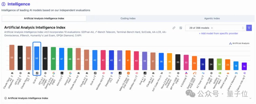 在全球权威的Artificial Analysis榜单中,GLM-5位居全球第四、开源第一,仅次于GPT、Claude和Gemini,稳稳进入了全球AI第一梯队。