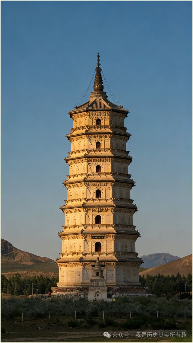 释迦佛舍利塔通体洁白,高有七十三米,八角七层,是当年辽兴宗为生母萧耨斤所建,塔身的每一个檐角都挂着风铎,风吹过时,两千多只铁铎便叮咚作响,塔壁上嵌着八百多面青铜镜,日光之下,光影流转,仿佛是无数只眼睛,在注视着这片草原上千年的兴衰。