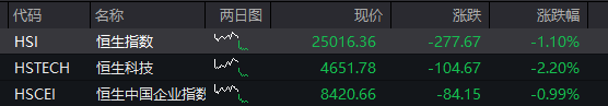 港股:截至发稿,恒指跌1.10%,恒科指跌2.20%。