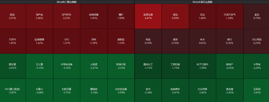 4月2日,A股早盘震荡下跌,三大股指盘初集体走低,深成指、创业板均跌超1%,油气、锂矿等资源股逆势走强,航运股拉升,AI算力、AI应用、算力硬件、玻璃纤维、贵金属等迎来调整。