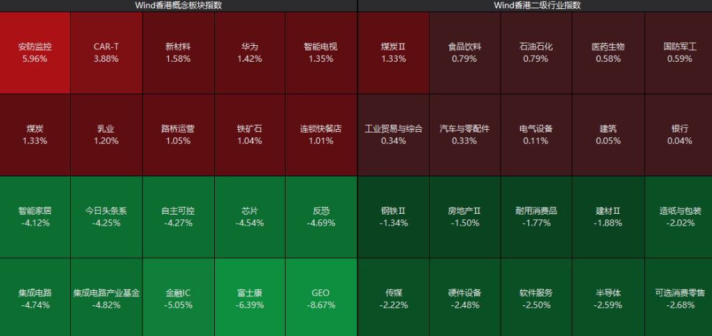 港股低开低走,恒指、恒科指双双跌超1%,科网股普遍走低,AI应用股大幅调整,智谱跌15%,煤炭股逆势拉升。