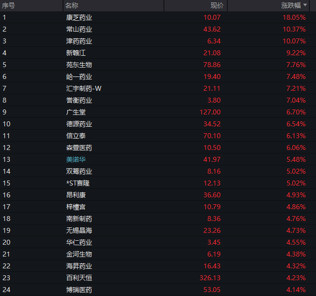 医药股反复活跃,津药药业5连板,北大医药、益佰制药、重药控股等涨停。