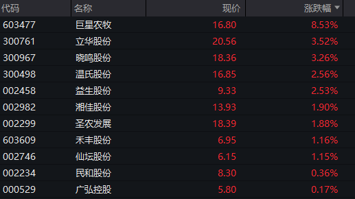 A股农林牧渔板块盘中拉升,鸡产业、猪产业方向走强。华统股份涨超7%,巨星农牧、牧原股份、温氏股份等纷纷走强。