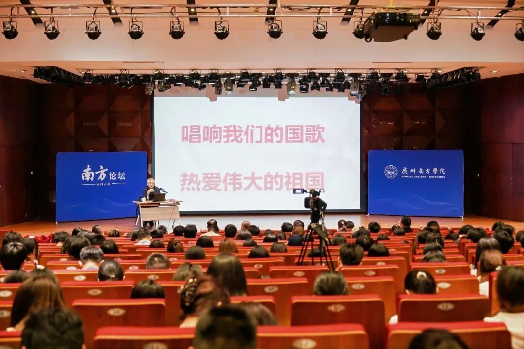 近日,广州南方学院南方论坛第147期邀请第十一届、十二届全国政协委员,原中国人民解放军军乐团团长于海担任主讲嘉宾,以《最爱我们的国歌》为主题为师生带来了一场艺术的洗礼与爱国主义精神淬炼。中国科学院院士、广州南方学院校长汤涛等校领导,以及师生代表共计400余人参加讲座。本期南方论坛由广州南方学院艺术学院院长臧艺兵主持。