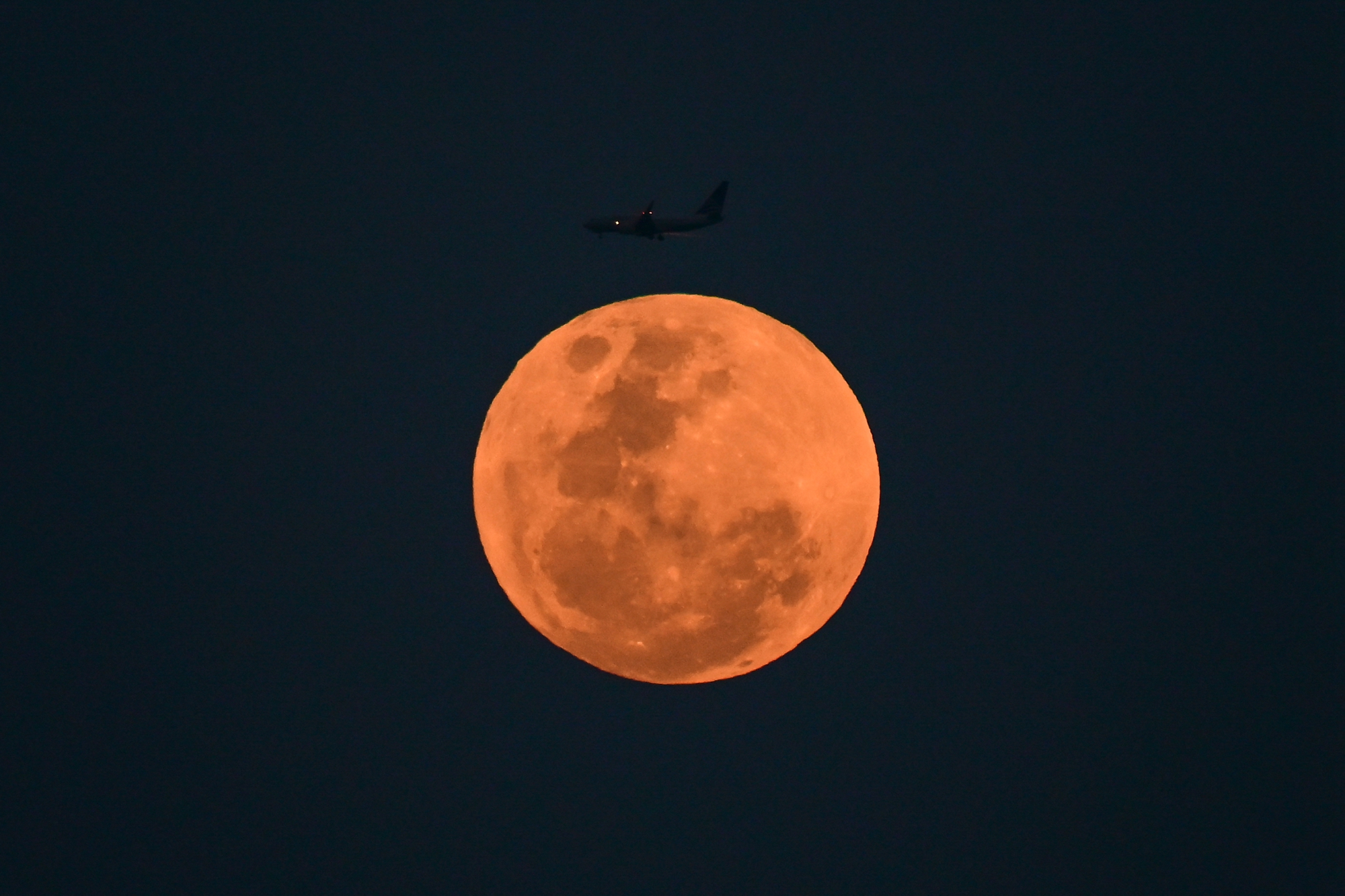 2026年4月1日晚间,巴拿马首都巴拿马城上空出现的“粉红月亮”。(Martin Bernetti/AFP via Getty Images)2026年4月1日晚间,一轮圆月在巴拿马首都巴拿马城的夜空中缓缓升起,一架客机刚好从其上方飞过。(Martin Bernetti/AFP via Getty Images)2026年4月1日晚间,一轮圆月在巴拿马首都巴拿马城的夜空中缓缓升起,一架客机刚好从其上方飞过。(Martin Bernetti/AFP via Getty Images)