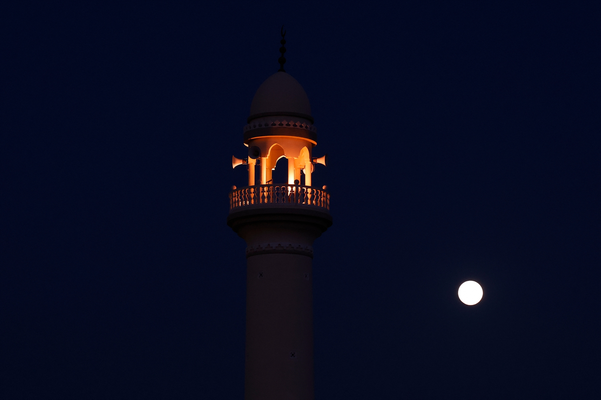 2026年4月1日晚间,一轮皎洁的圆月在卡塔尔首都多哈的夜空中缓缓升起。(Karim Jaafar/AFP via Getty Images)2026年4月1日晚间,卡塔尔首都多哈上空出现的“粉红月亮”。(Karim Jaafar/AFP via Getty Images)2026年4月1日晚间,卡塔尔首都多哈上空出现的一轮硕大的“粉红月亮”。(Karim Jaafar/AFP via Getty Images)