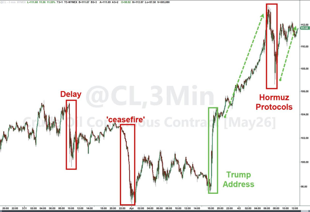 华尔街见闻提及,川普在全美电视讲话中释放强硬信号,令市场对战争迅速结束的押注迅速逆转。油价随即飙升,并引发市场对近期原油供应持续紧张的强烈担忧。