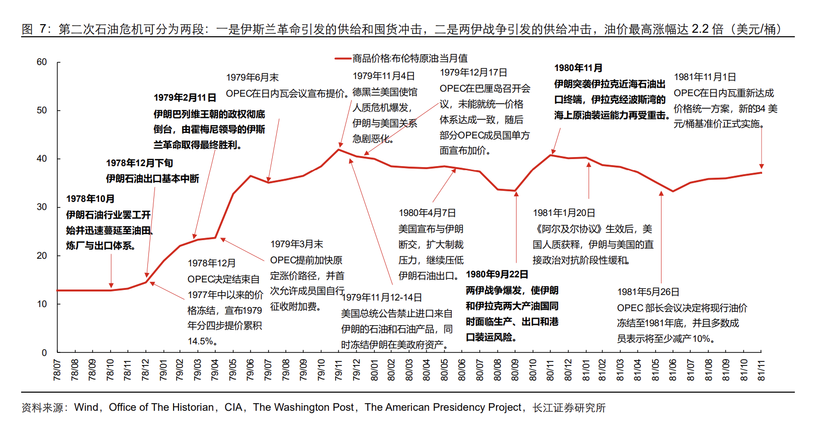 把近半个世纪几次中东相关冲突放在一张时间轴上看,油价的“暴冲”并不总和战争烈度挂钩,更像是两件事的函数:有没有形成真实断供,以及断供能不能被别的产油国、战略储备和需求回落迅速填上。长江证券这份宏观深度报告把六次冲突拆开复盘,把油价—通胀—增长—美联储—资产交易主线串成一条链,读起来比单看某一次事件更有用。