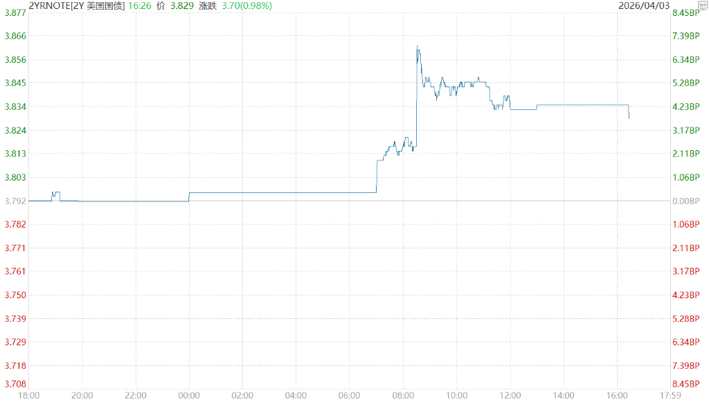 两年期美债收益率上行3.7个基点,报3.829%。