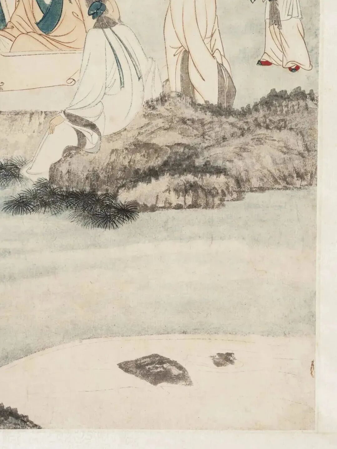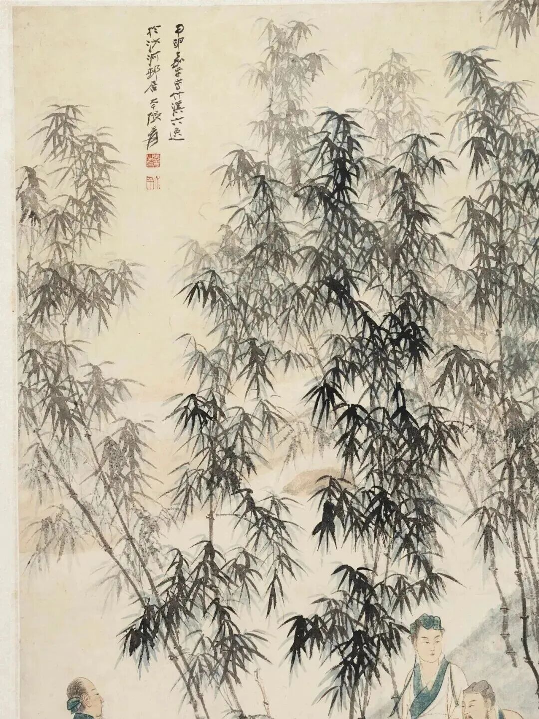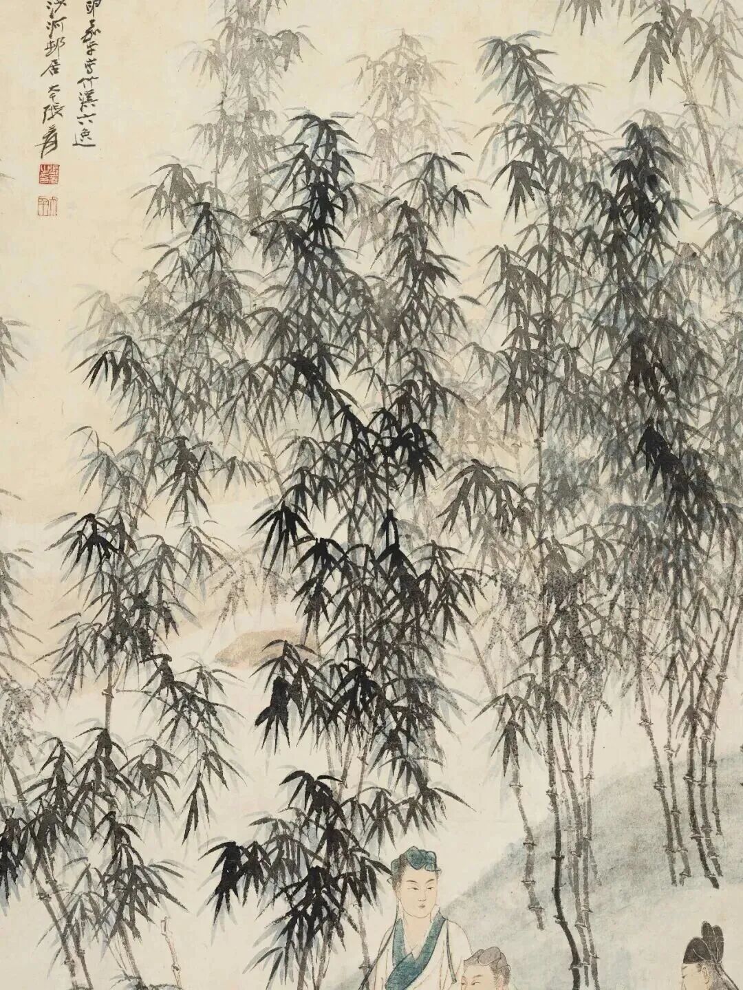 别人画竹溪六逸,多是清瘦孤傲。张大千偏不,他画得热闹又潇洒。