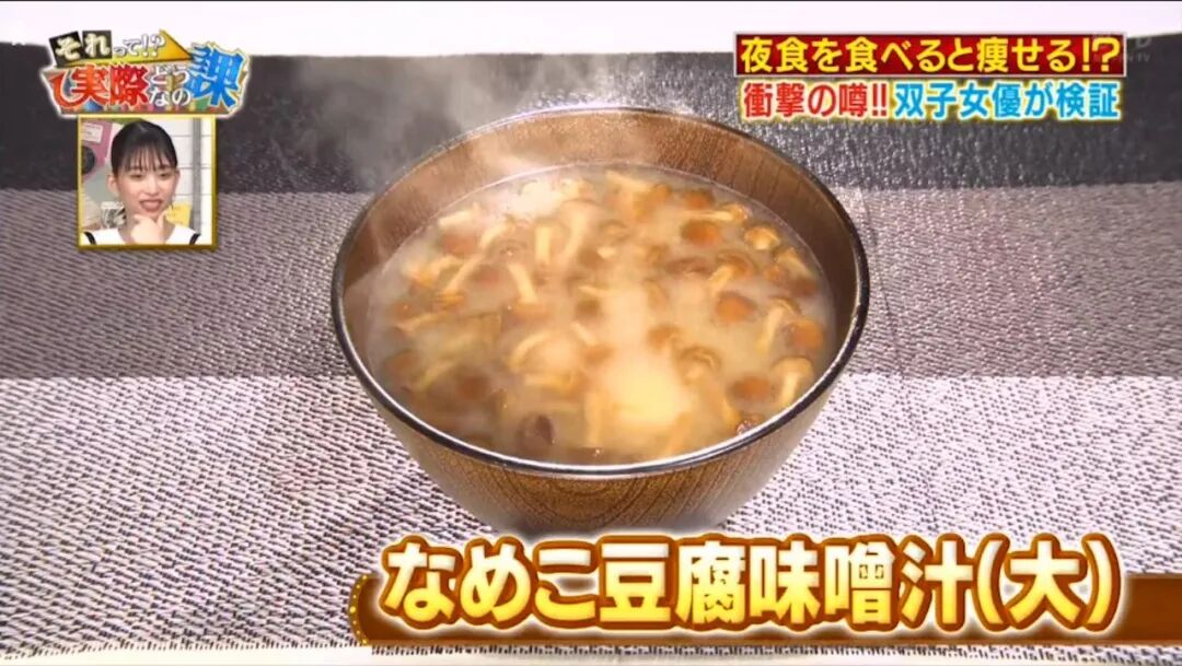 这天节目组为她准备了一汤碗滑菇(なめこ)味噌汤。