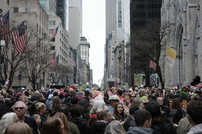 一年一度的纽约市复活节彩帽游行(Easter Parade and Bonnet Festival)5日在曼哈顿第五大道登场。尽管当日天公不作美,但阴雨天气并未阻挡民众参与热情;成千上万的市民与游客戴着精心设计的头饰登场,展现这座城市独有的生命力,也借此喊出艺术、政治及文化的多元宣言。