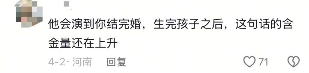 “他会演到你结完婚,生完孩子之后,这句话的含金量还在上升。”