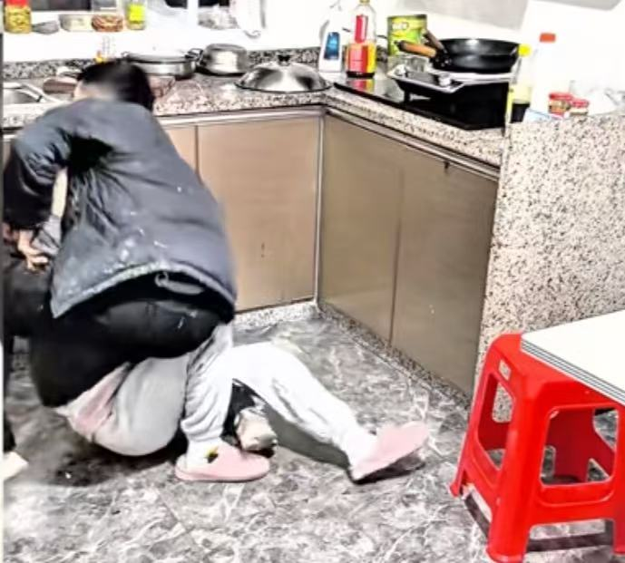 妻子起身阻止反抗,男人甚至直接以碾压之势,将妻子按倒在了地上……