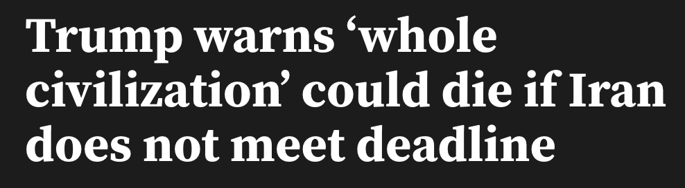 周二(4月7日),美国总统川普在社交媒体上发出了自美伊战争爆发以来最令人毛骨悚然的警告:“整个文明将死于今夜,且永远无法复苏(A whole civilization will die tonight, never to be brought back again)。”