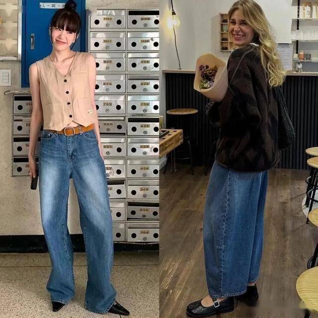 今年春天平底乐福鞋搭配牛仔阔腿裤,真的是火出圈了。