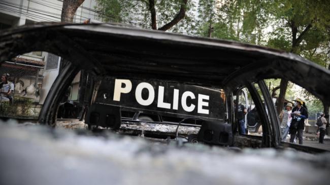图为2013年12月3日,一辆泰国警车。(Rufus Cox/Getty Images)