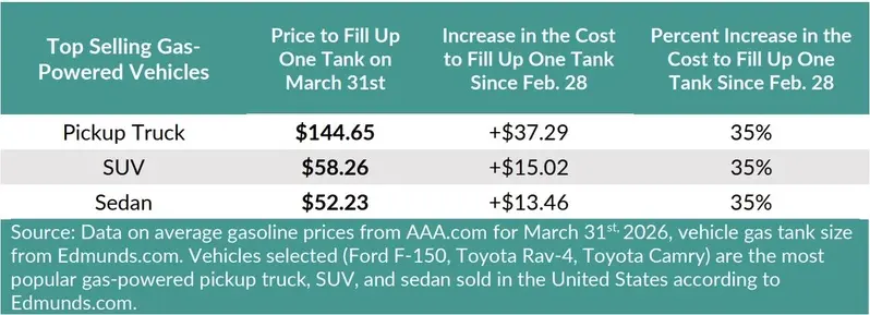 数据显示,自2月28日以来,仅加州家庭就已在汽油上额外支出的金额达9亿6980万美元,如今加满一桶油所需的费用,已增加约35%。以全美销量领先的Ford F-150皮卡车为例,目前加满一桶油约需支付145美元,与一个月前相比,单次加油成本激增超过37美元。