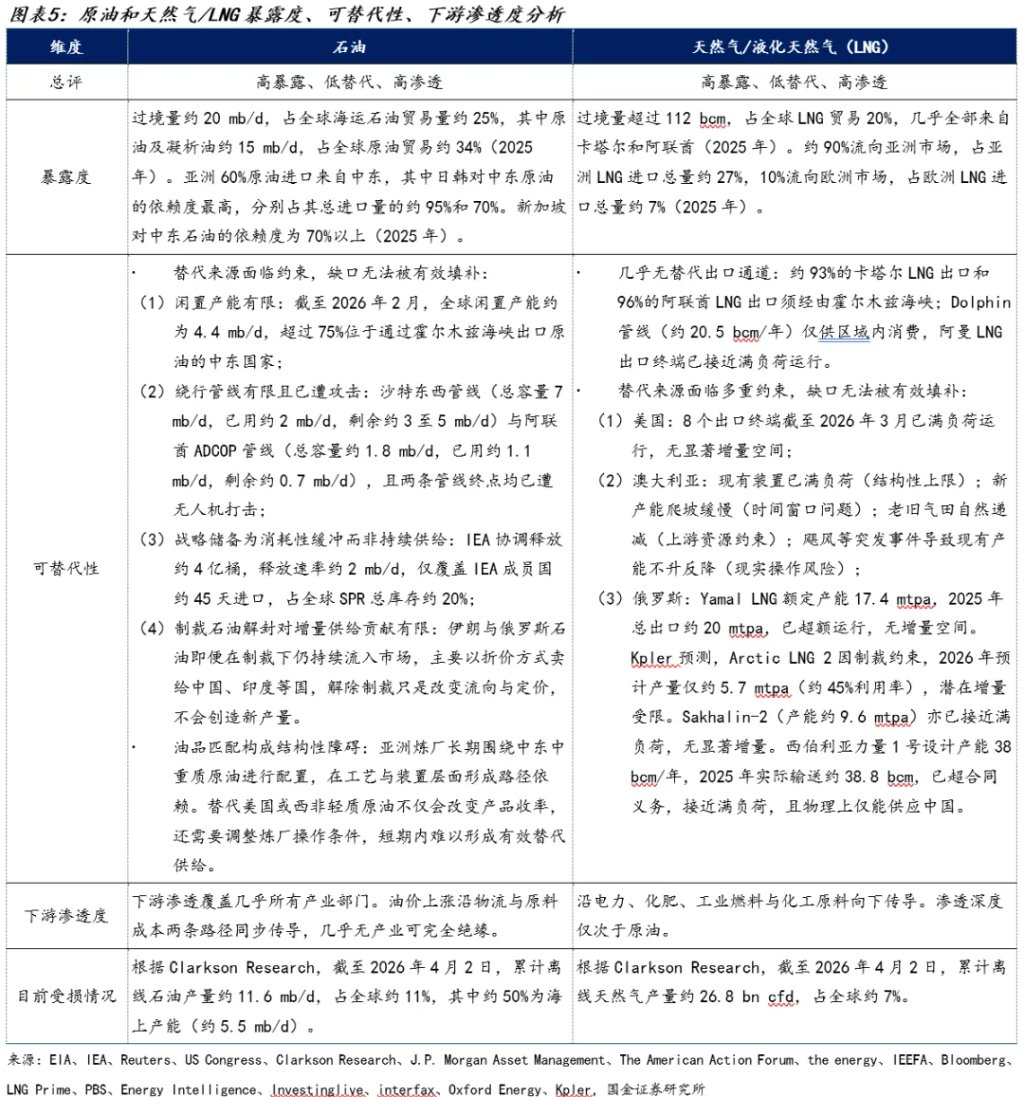 本轮冲击中,能源体系之所以成为最核心的风险源,在于其同时具备"高暴露、低替代、高渗透"三重特征的叠加。