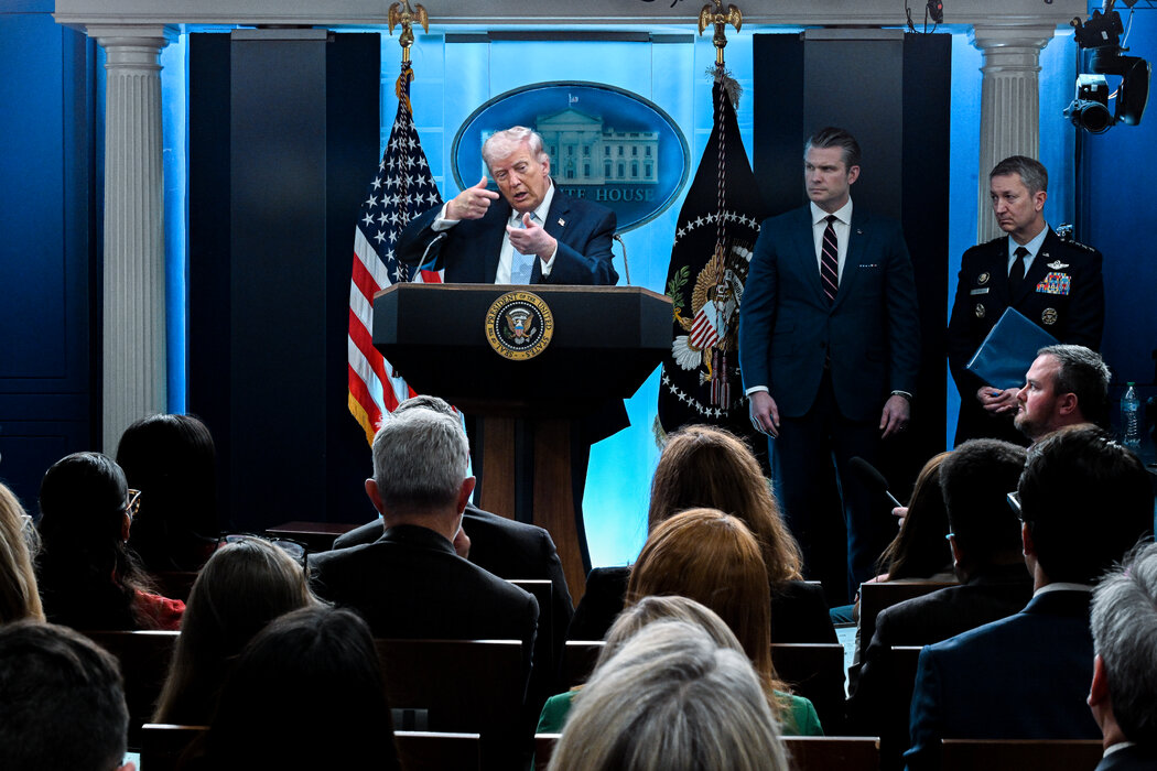 周一,川普在白宫的一场媒体吹风会上。 Kenny Holston/The New York Times