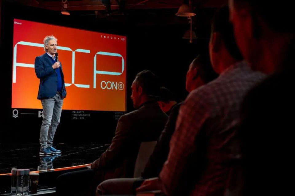 下图:3月13日,Palantir公司的CEO亚历克斯·卡普在AIPCon大会(展示该企业成果的人工智能大会)上发言。图/视觉中国
