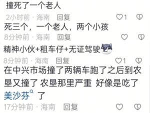 网传海南男孩驾奔驰一路乱撞 造成至少3亡