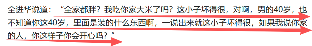 面对这般无端羞辱与家庭攻击,全进华忍无可忍当场怒怼,质问对方言论伤人、自己踏实生活并未影响任何人,一番护家发言直戳人心。