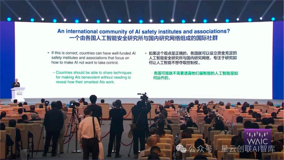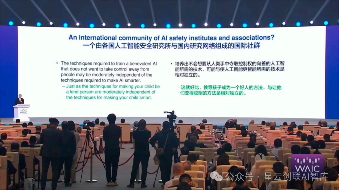 所以我们希望能够有一个由 AI 安全机构构成的国际社群来研究技术、训练 AI,让 AI 向善发展。