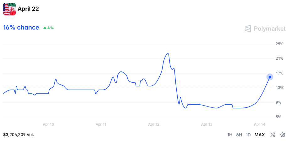 Polymarket数据显示,市场对在停火期内达成协议的押注概率在周一有所回升。