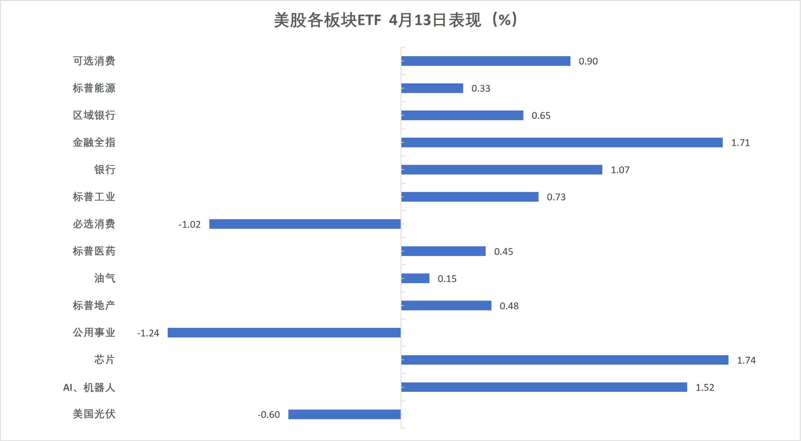 美股行业ETF普遍收涨,网络股指数ETF收涨2.38%,科技行业ETF涨2.10%,全球科技股指数ETF涨1.90%,金融业ETF涨1.71%,半导体ETF涨1.48%。