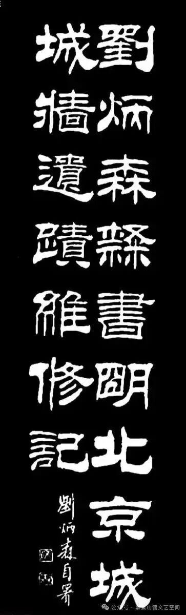 而刘炳森的隶书,气息是往下走的,他把隶书接到楷书上面去了。他的隶书里,太多的东西是从楷书里来的,匀称、光洁、规整,这些都是楷书的审美标准,或者说是唐楷的审美标准。拿到隶书里,便消解掉隶书那种古朴、雄强趣味,如唐人隶书也出现了这种弊端,如史惟则、韩择木、蔡有邻等人。这就是为什么他的隶书看起来总觉得少了点什么,少的不是功夫,是气息,是从更古老的文字里继承下来的、浑茫而厚重的美感。