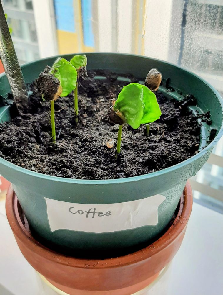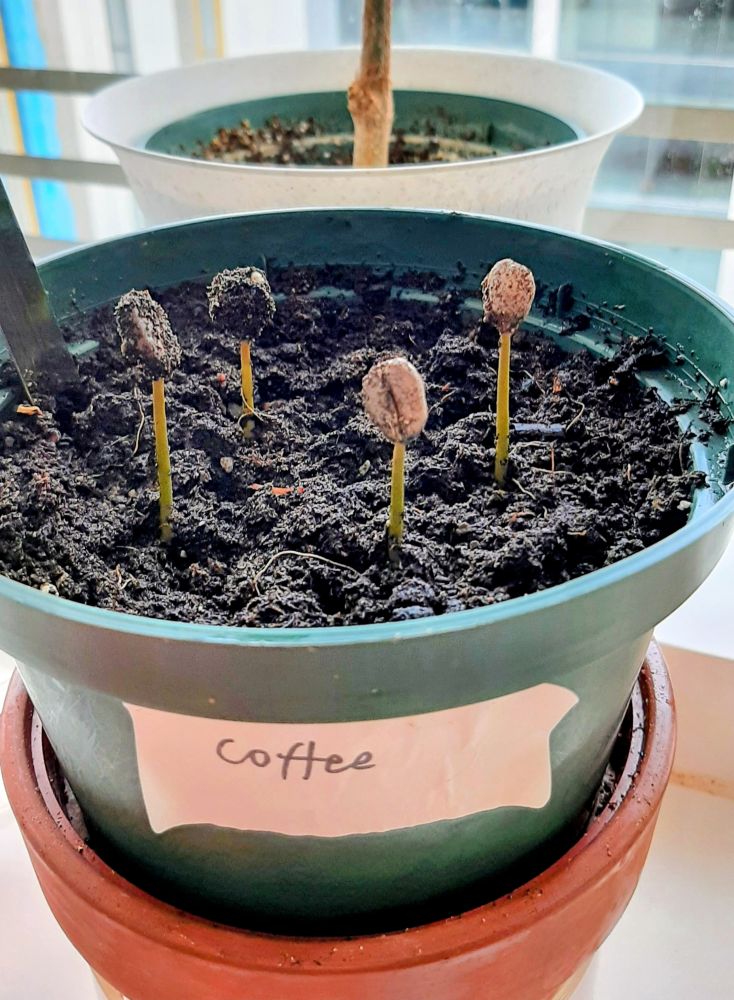 2023年夏天,我在办公室种下了这样些生咖啡豆: