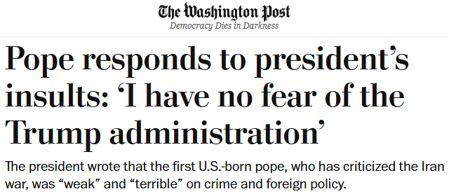 而教皇利奥本人则对川普的批评不以为然,他周一告诉记者:“我并不害怕川普政府。”