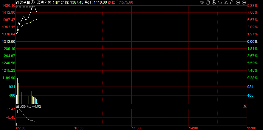 源杰科技持续走强,盘中大涨超8%,股价突破1410元,超越贵州茅台成为A股新股王。