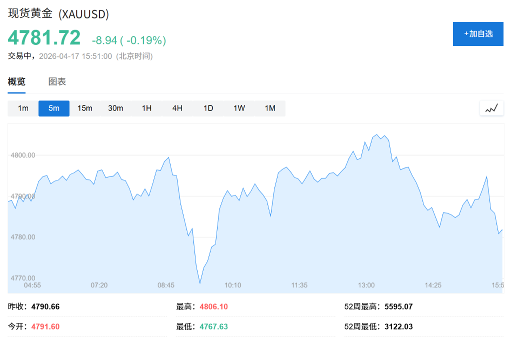 ?? 黄金价格基本持平,报每盎司4781美元。